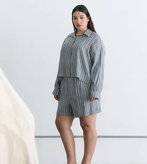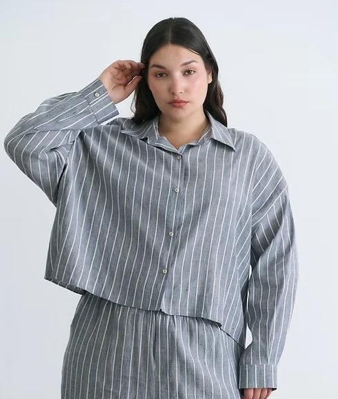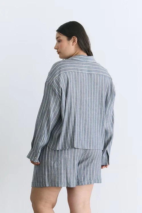 Camisa rayada con tela lino lurex
